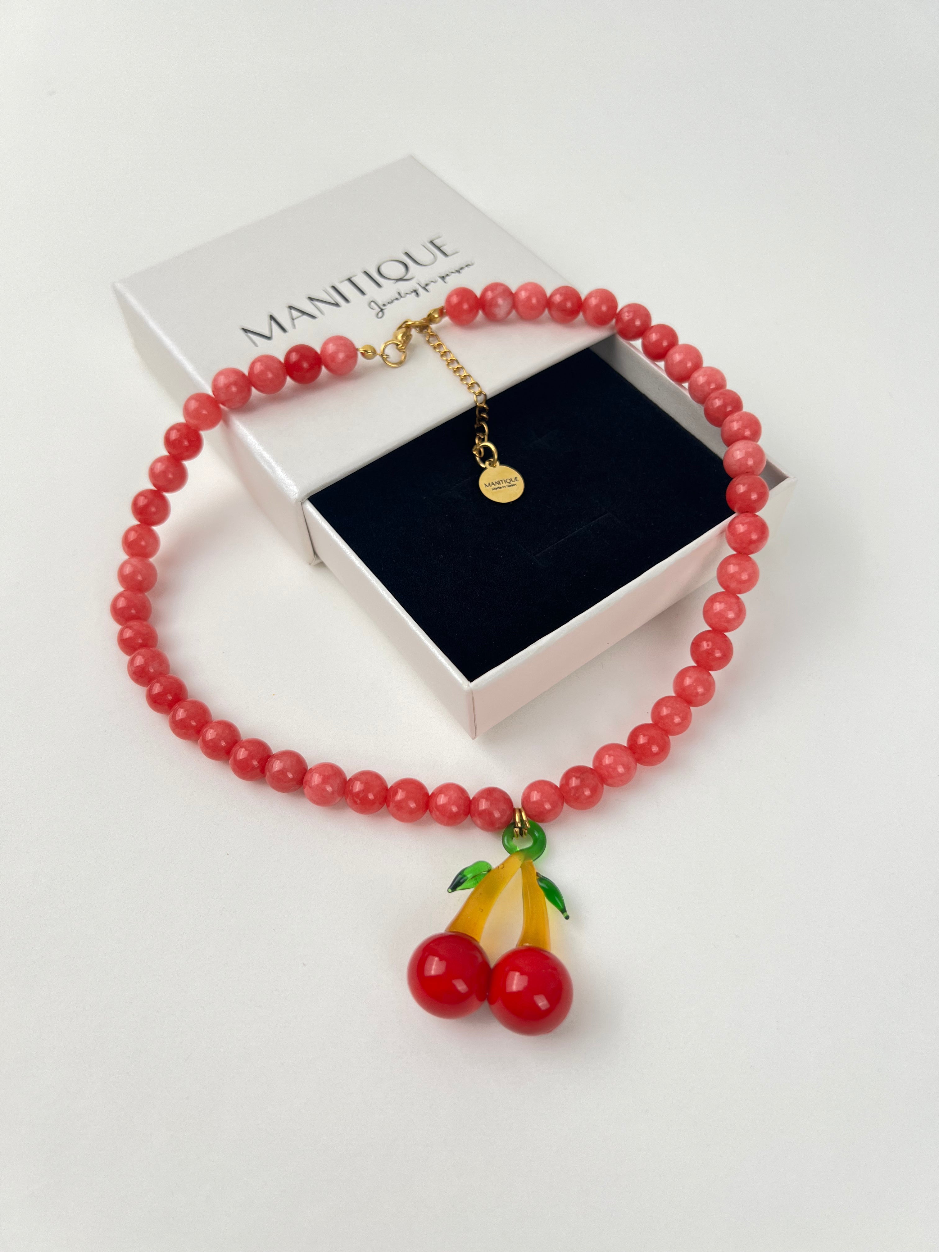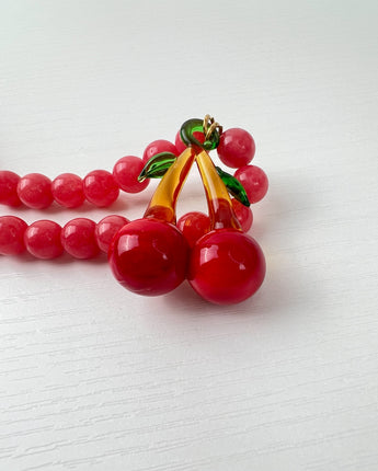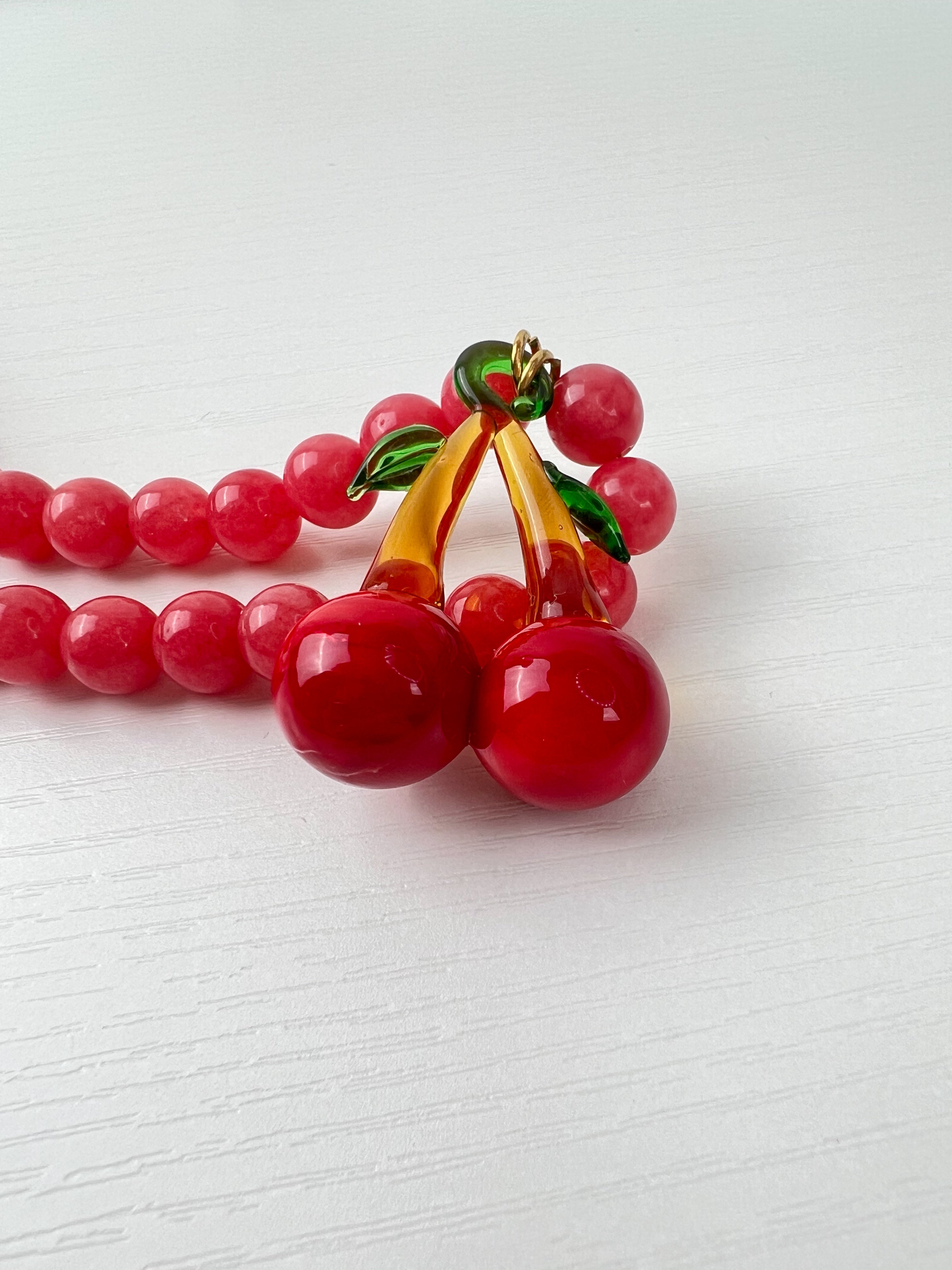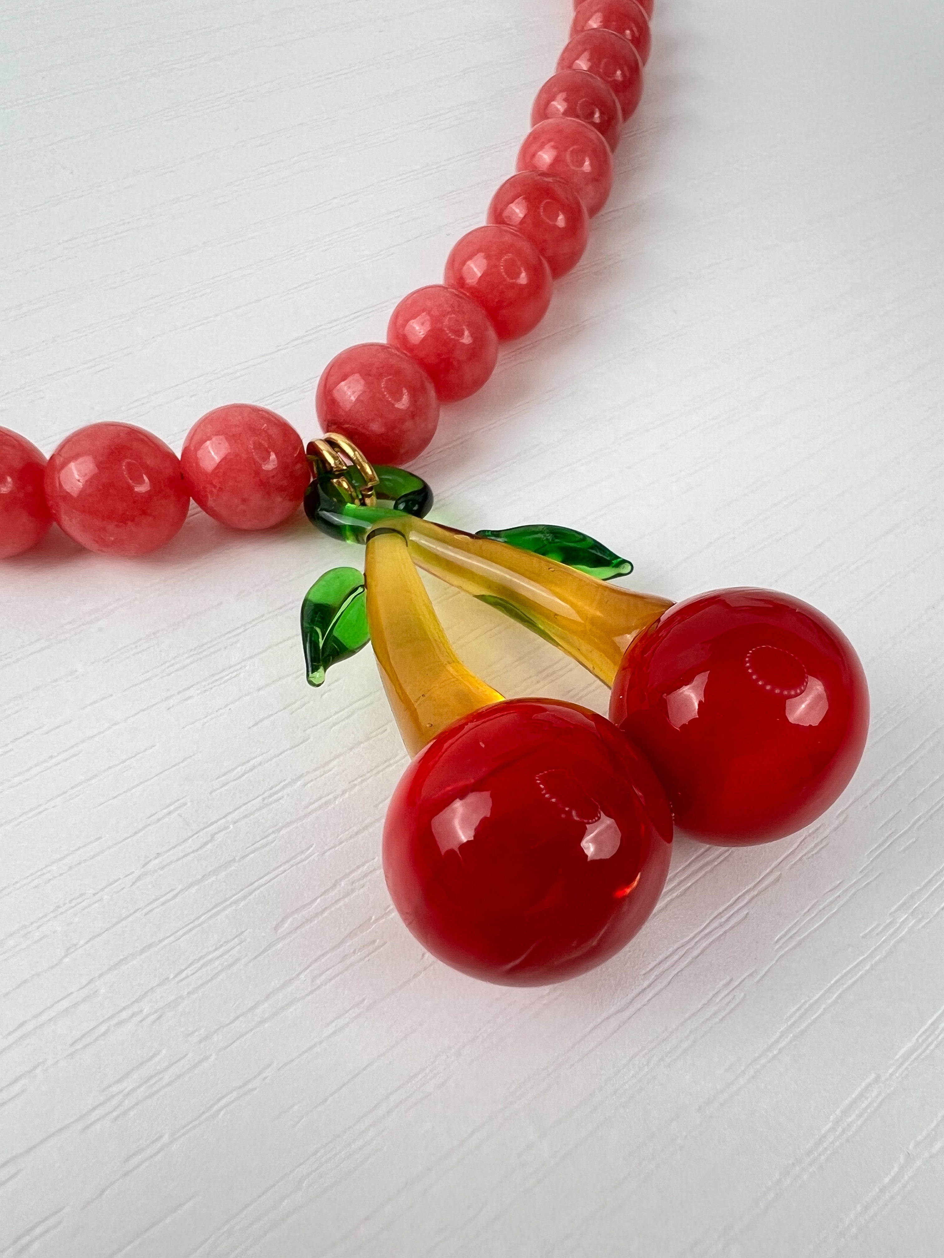 MATERIALS: lampwork glass pendant, dyed chalcedony beads, stainless steel findings