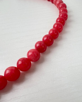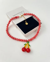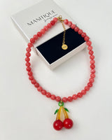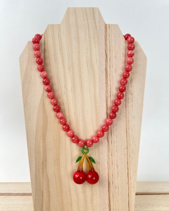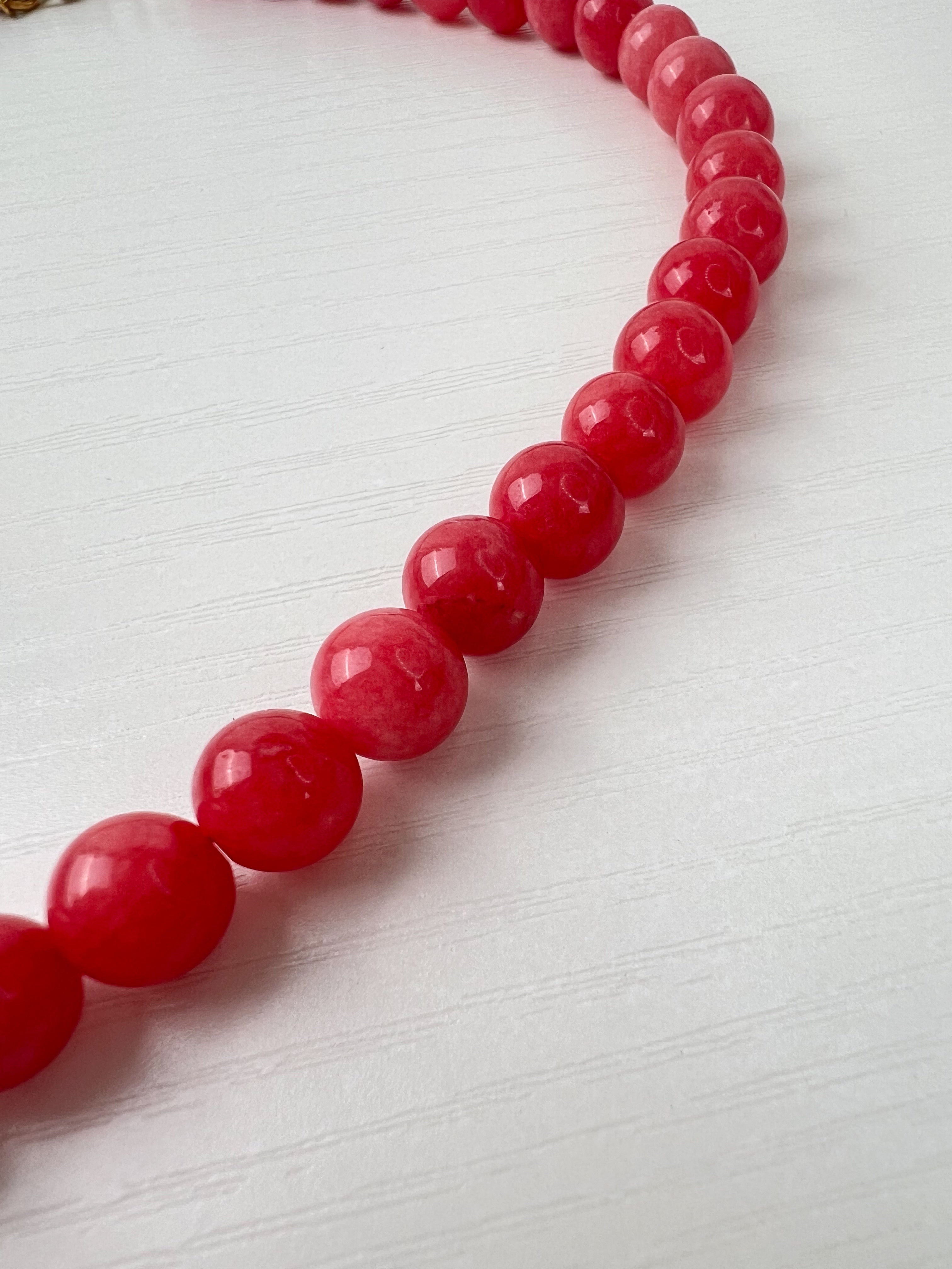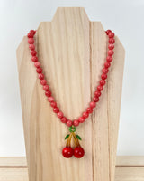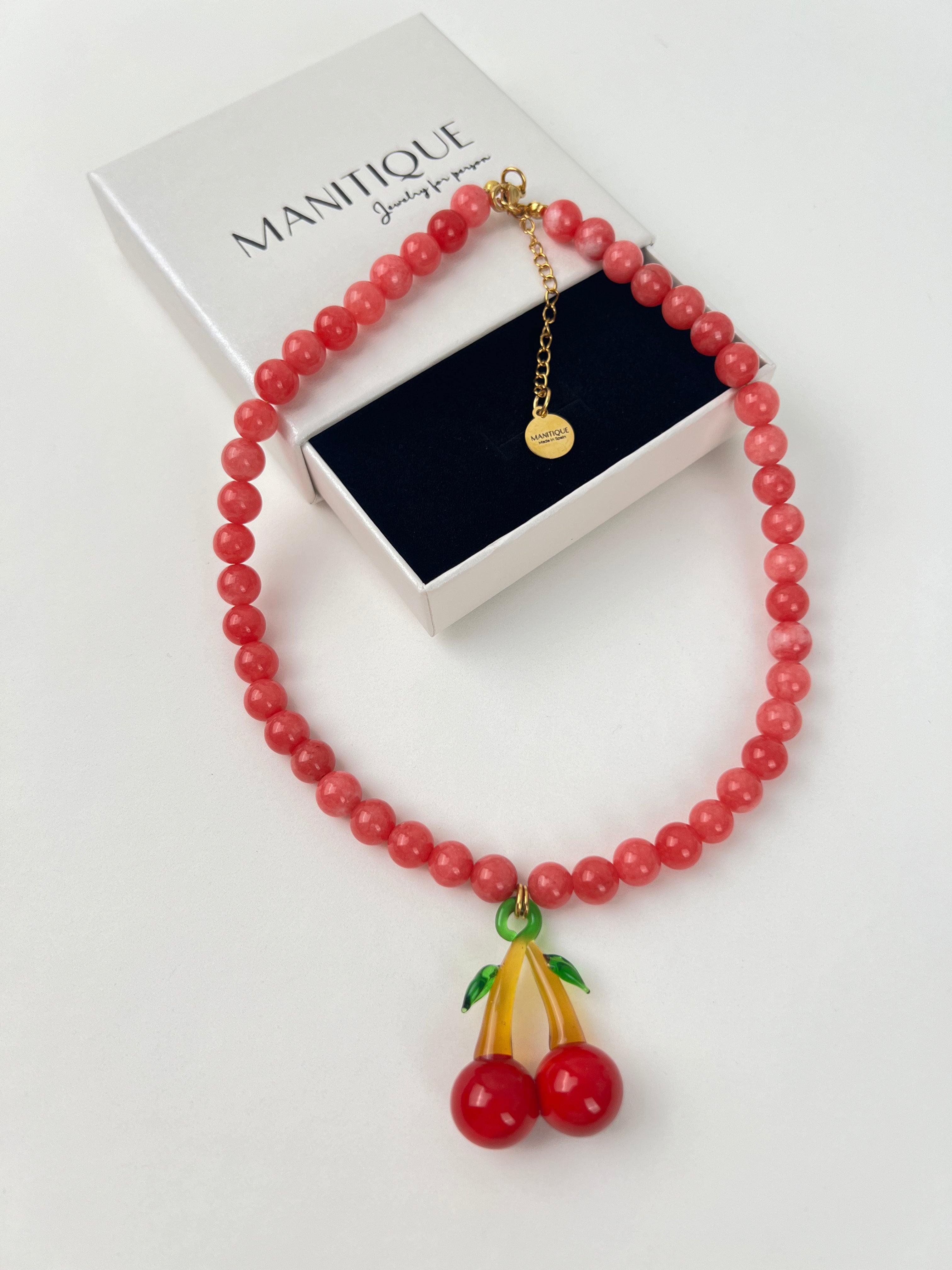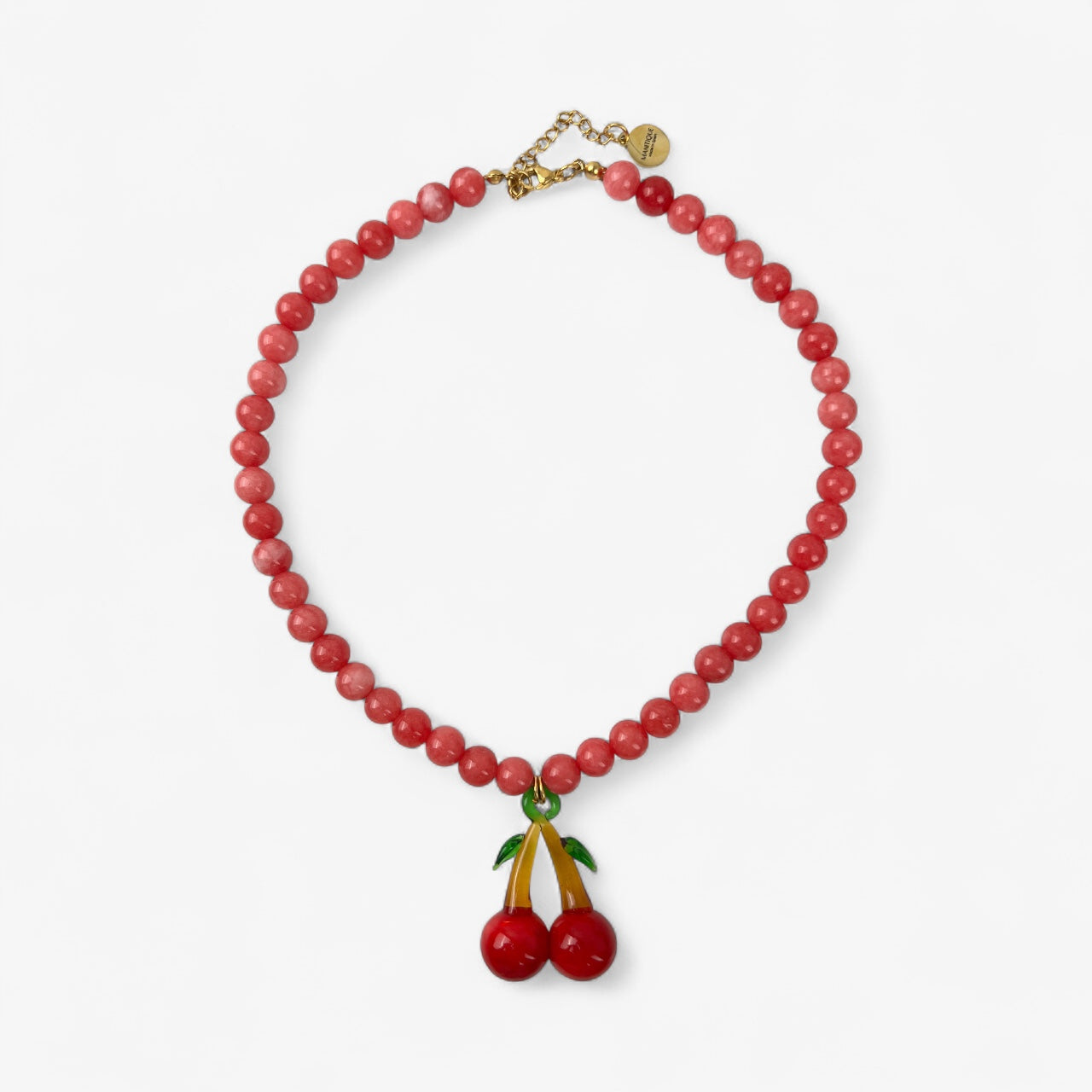 MATERIALS: lampwork glass pendant, dyed chalcedony beads, stainless steel findings