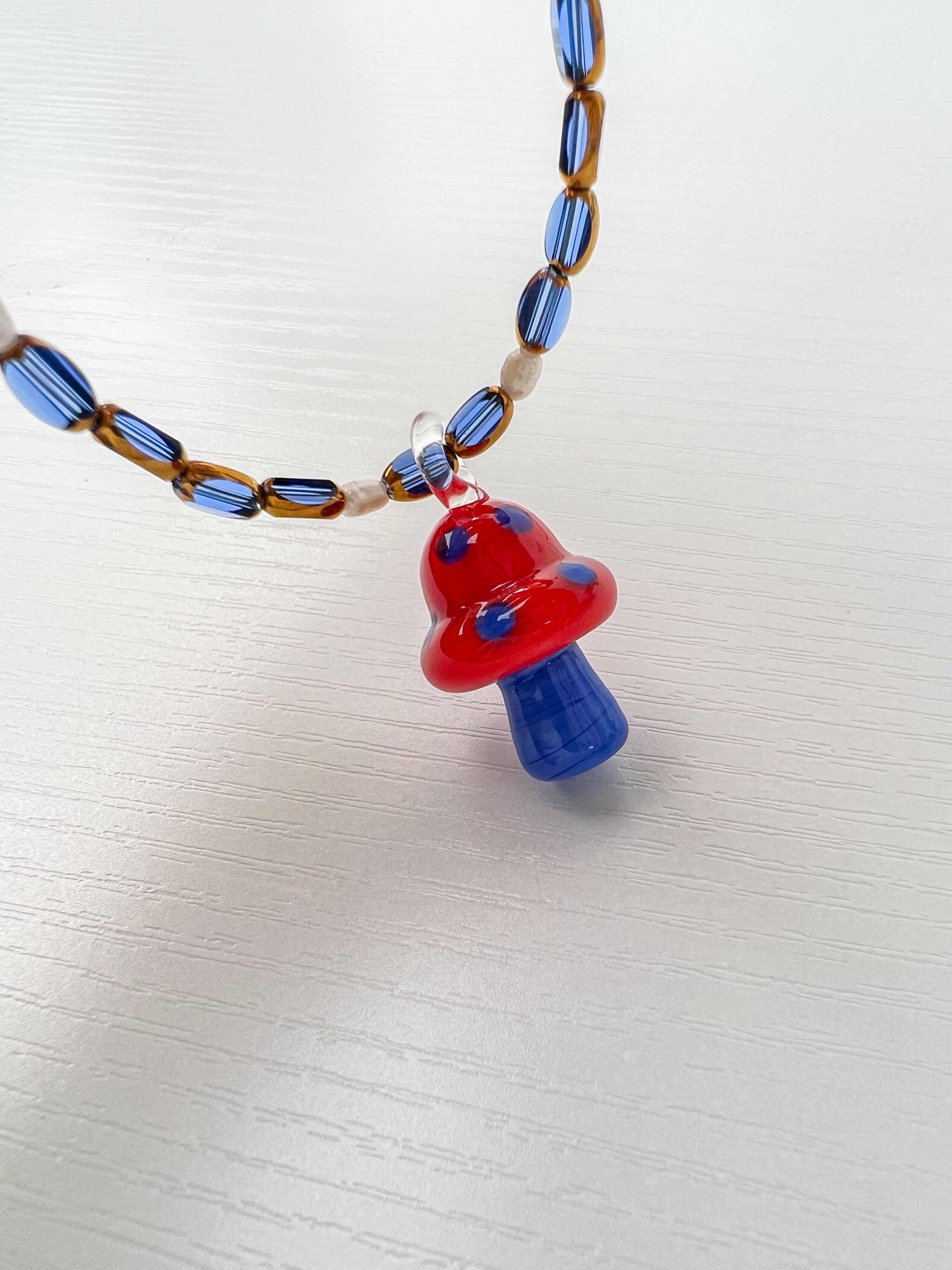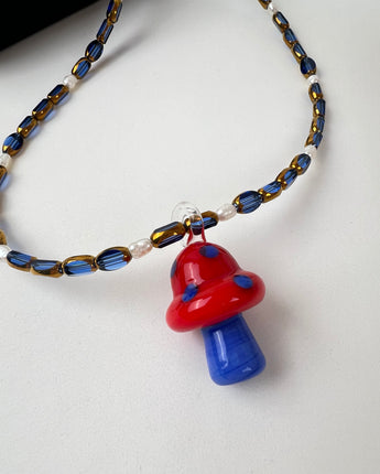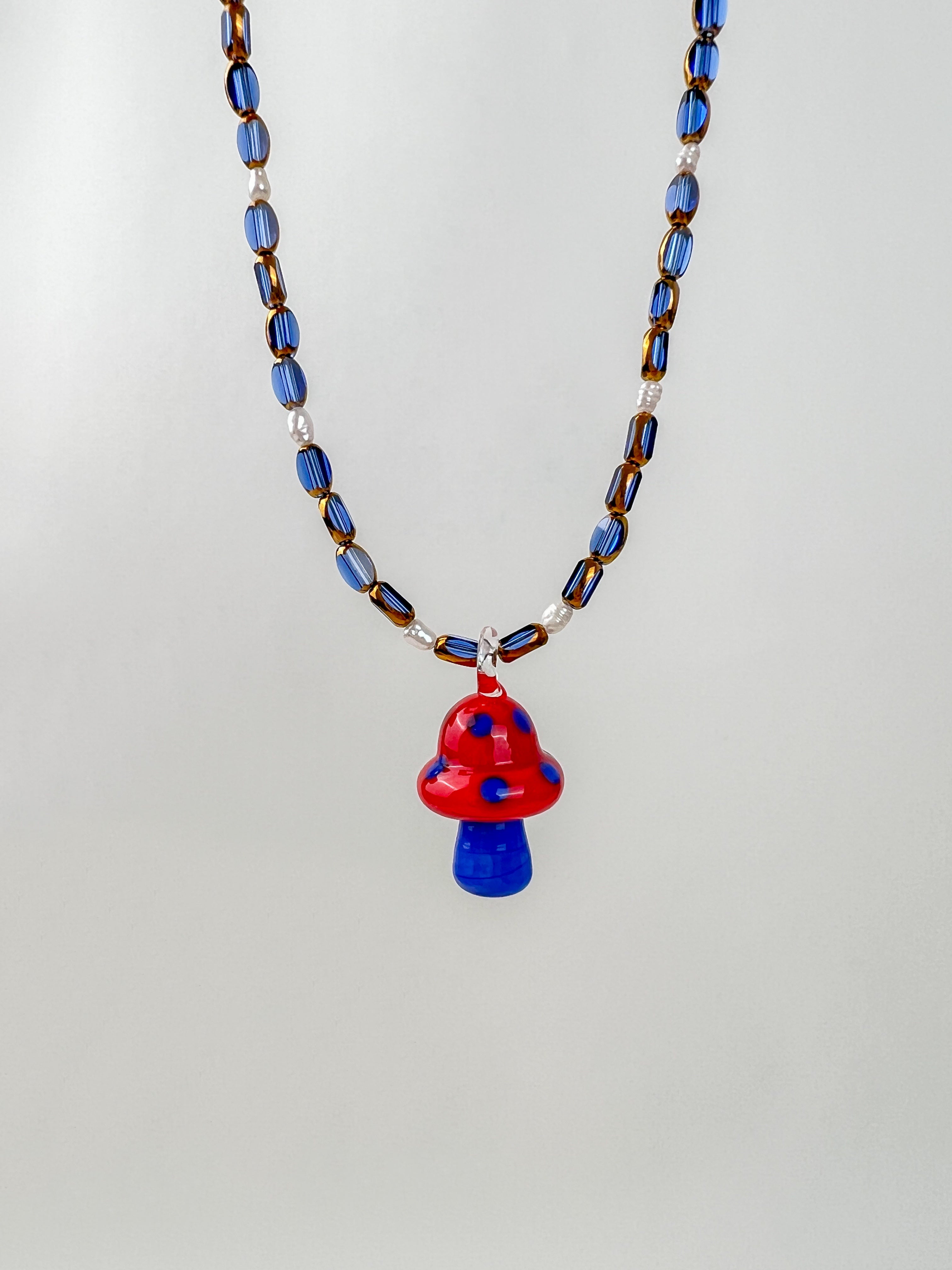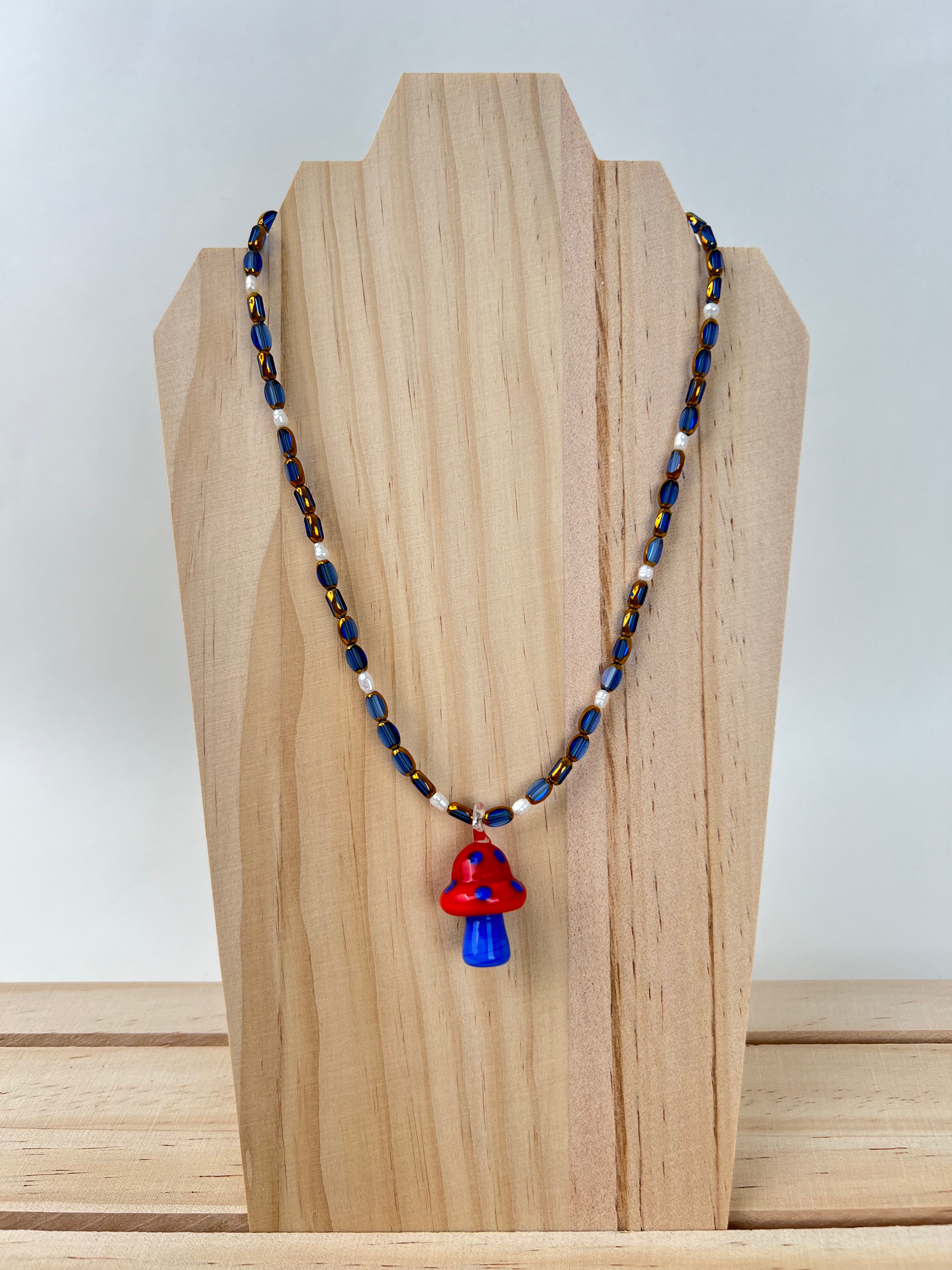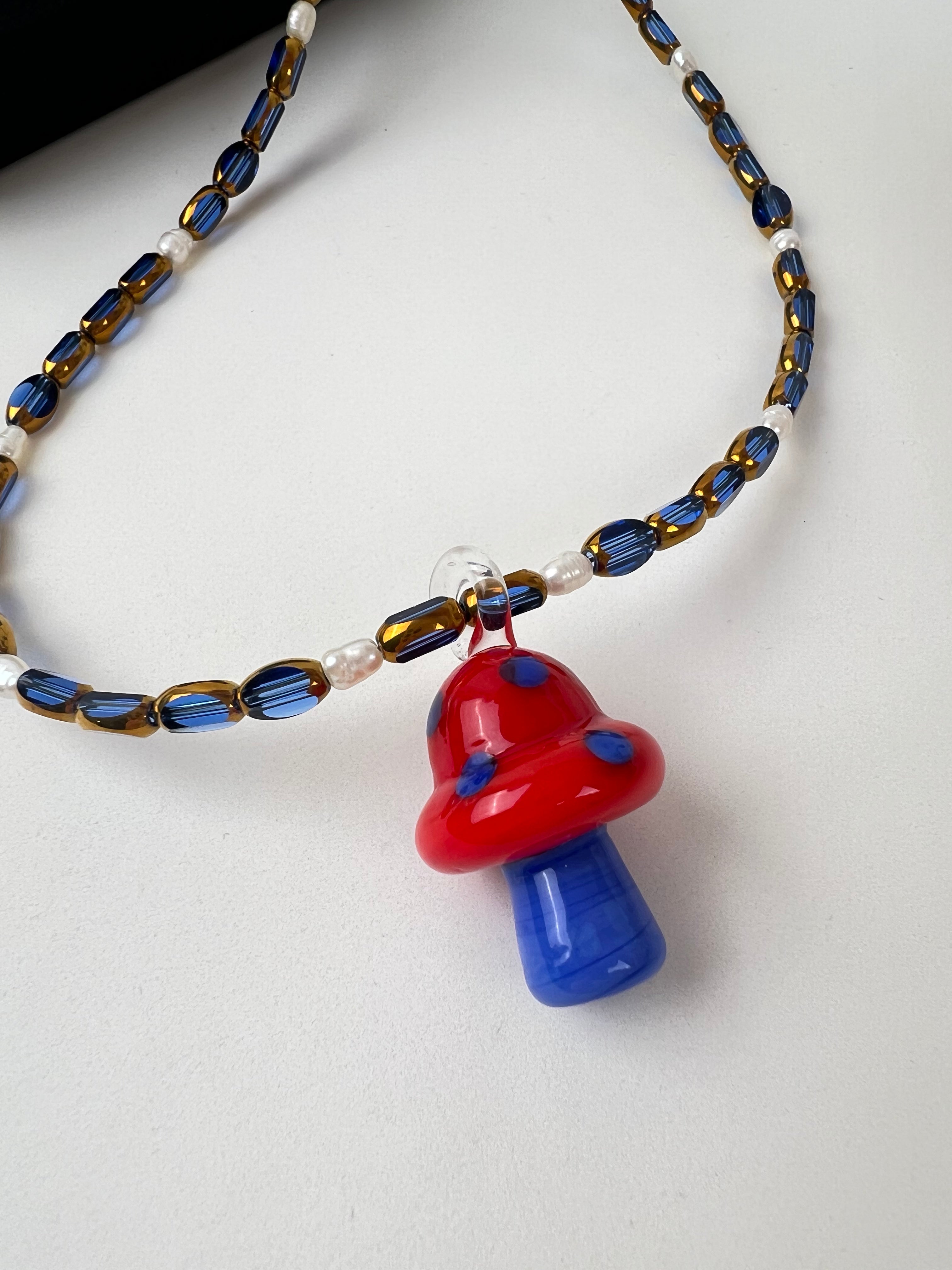 The necklace is made of glass beads, natural freshwater pearls and a lampwork glass pendant.