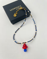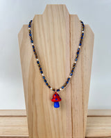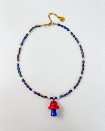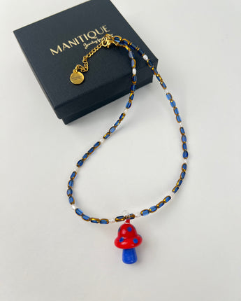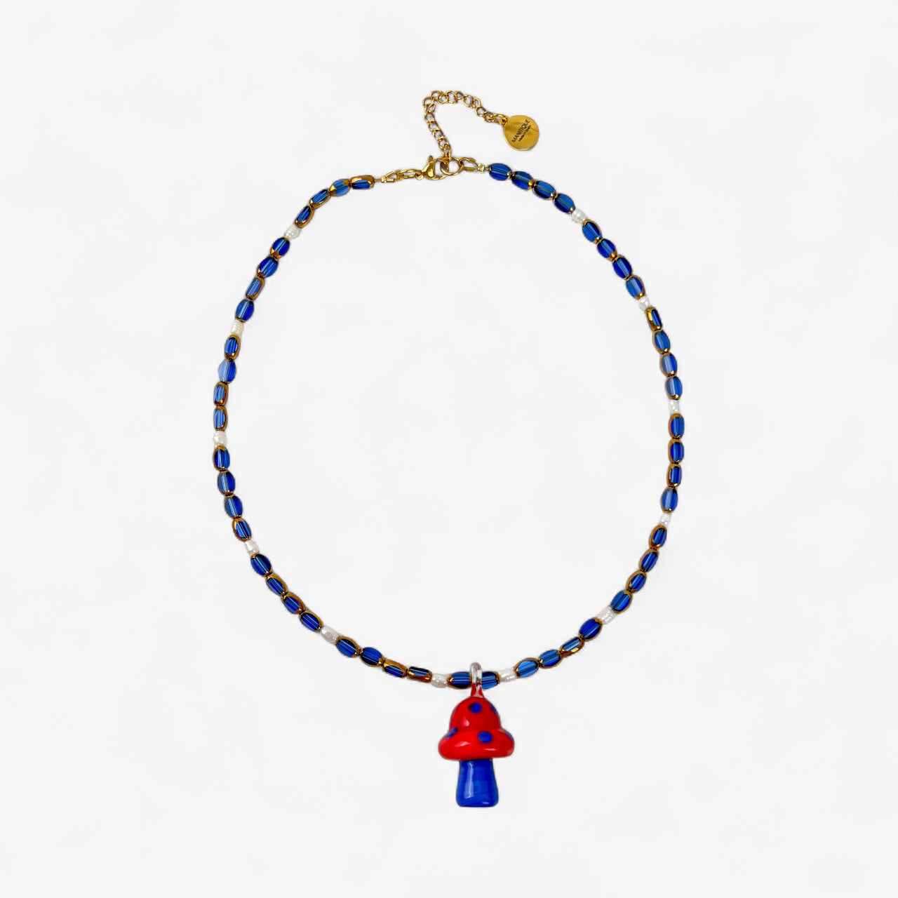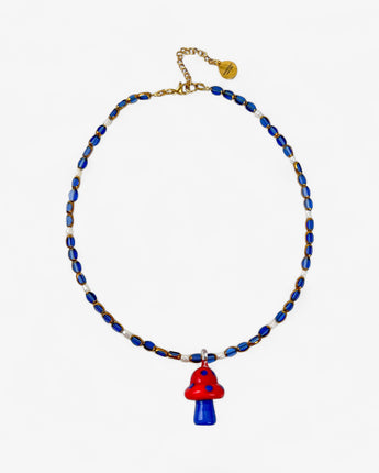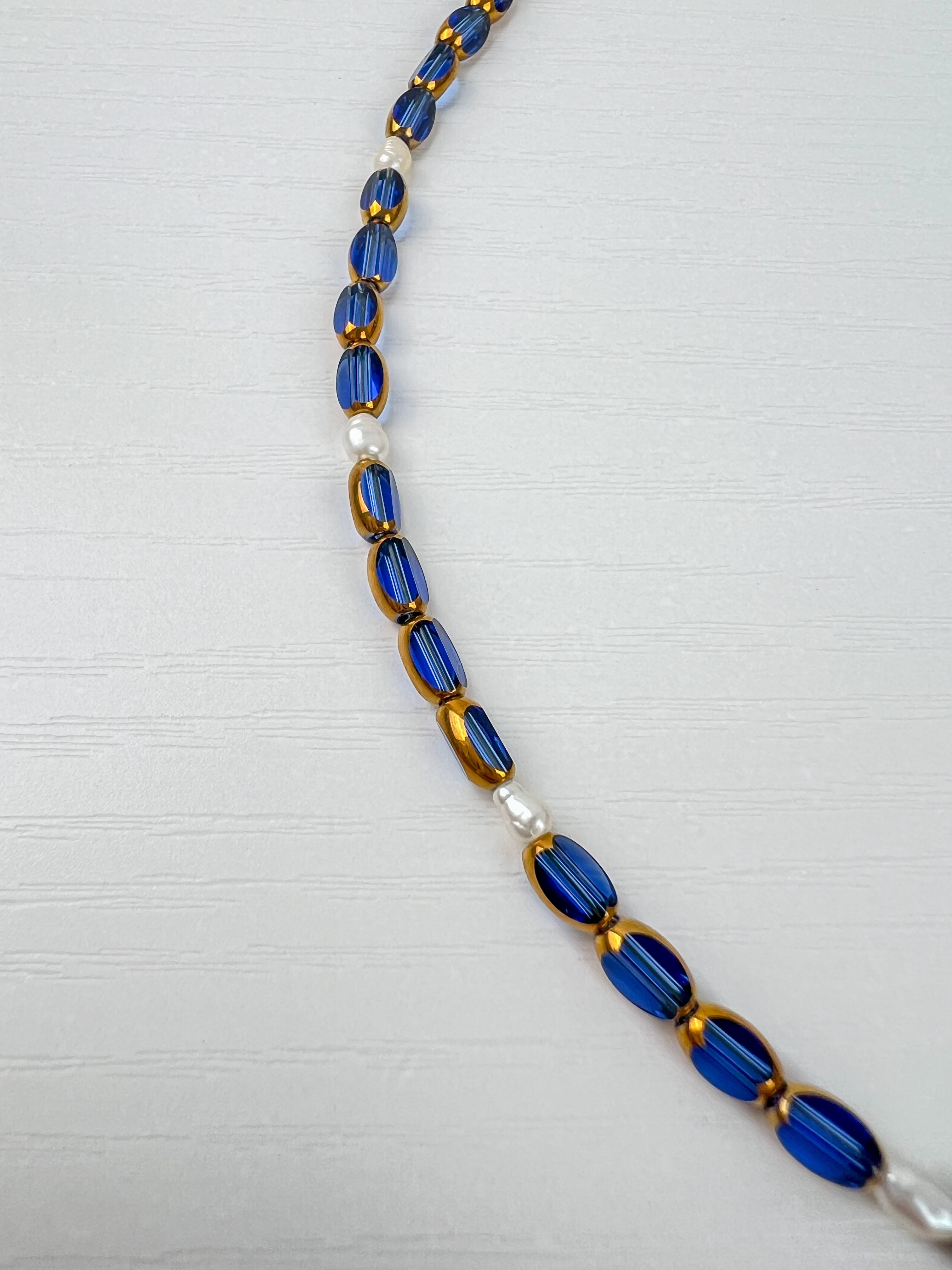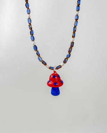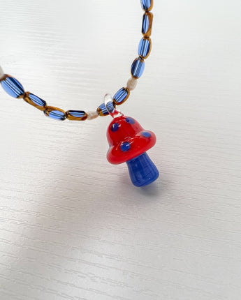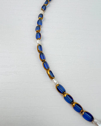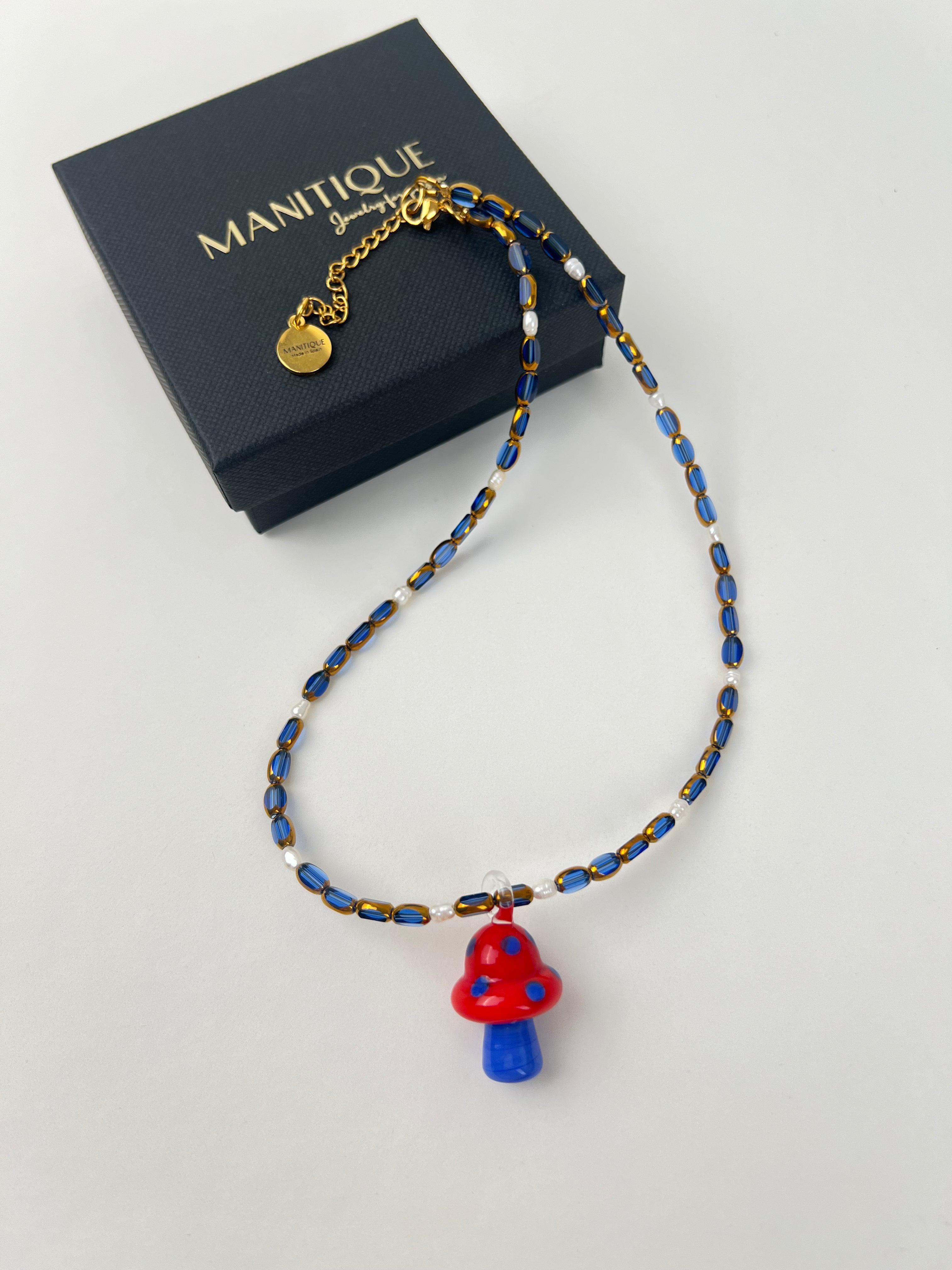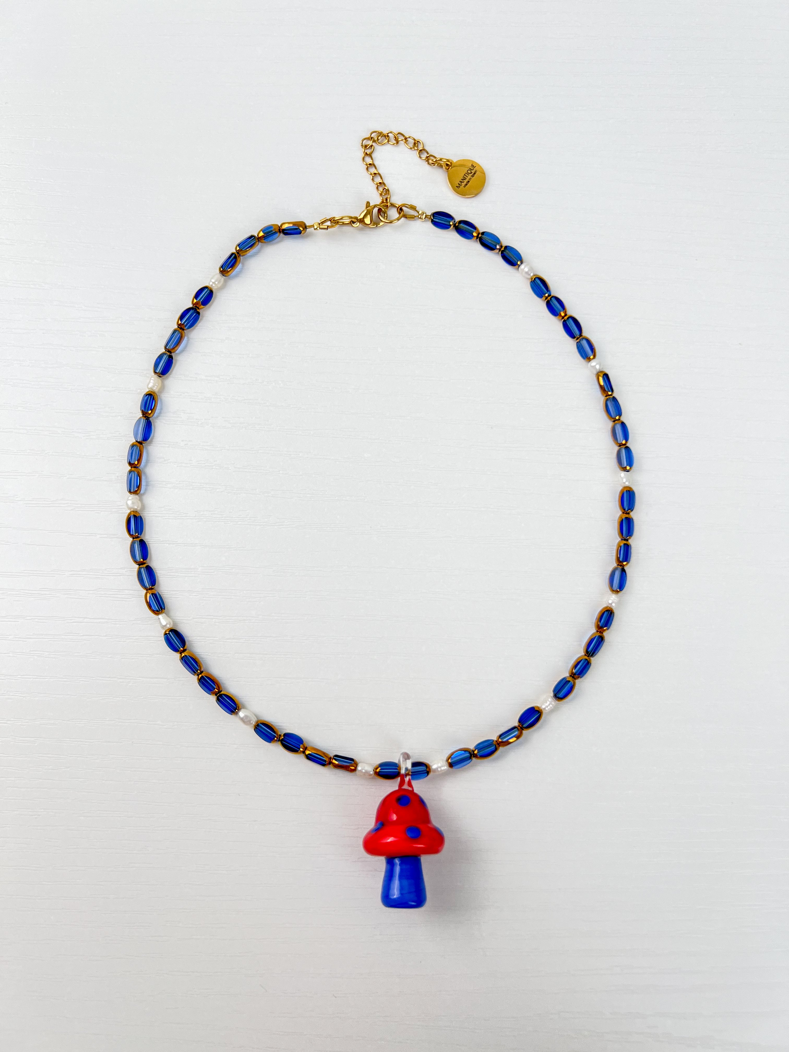 The necklace is made of glass beads, natural freshwater pearls and a lampwork glass pendant.