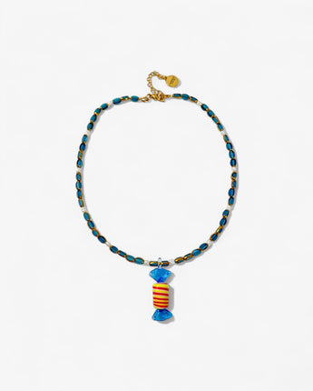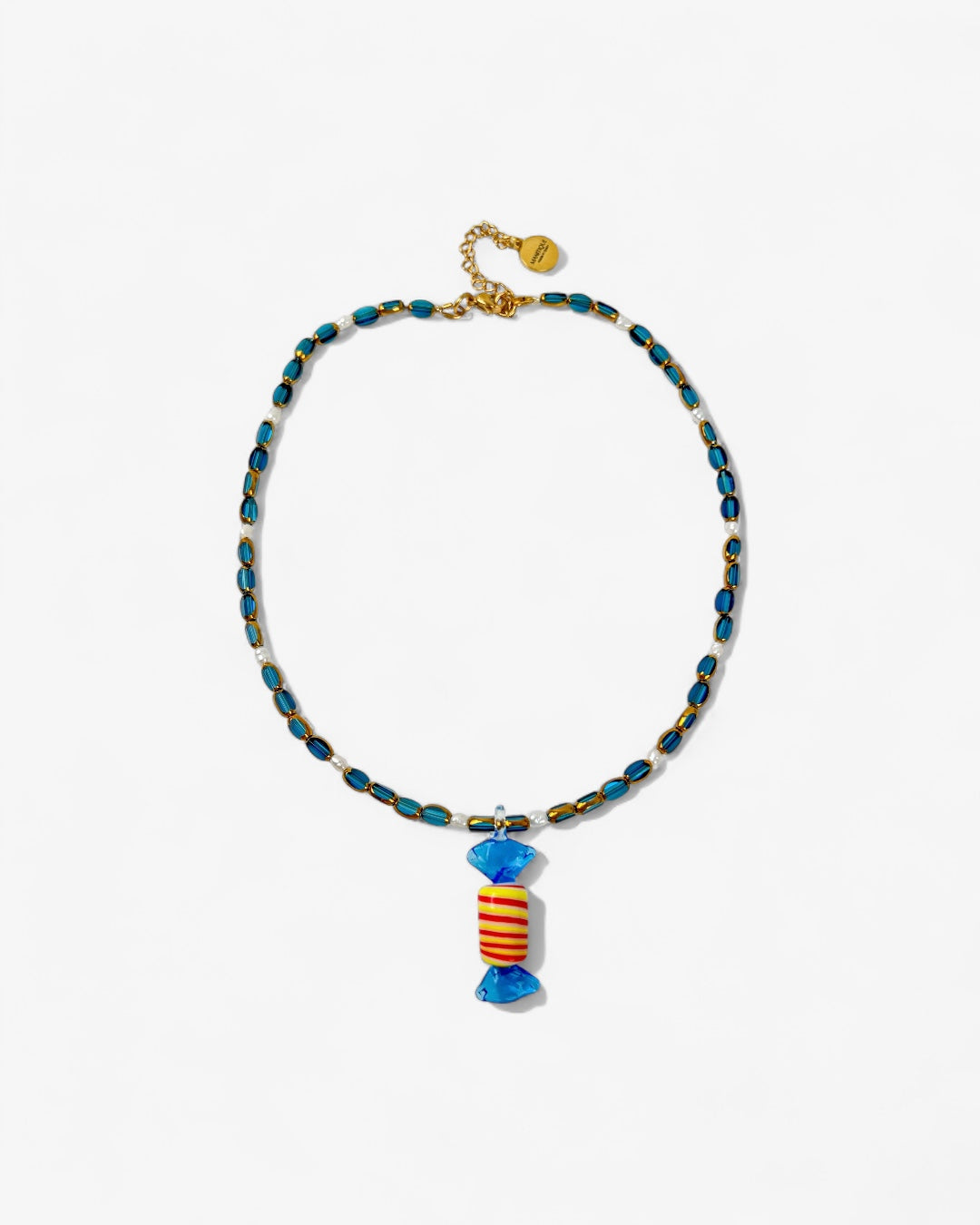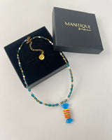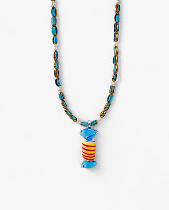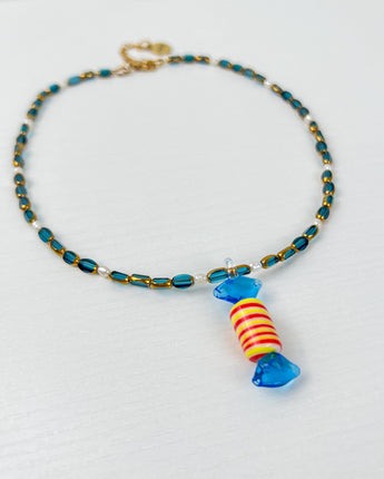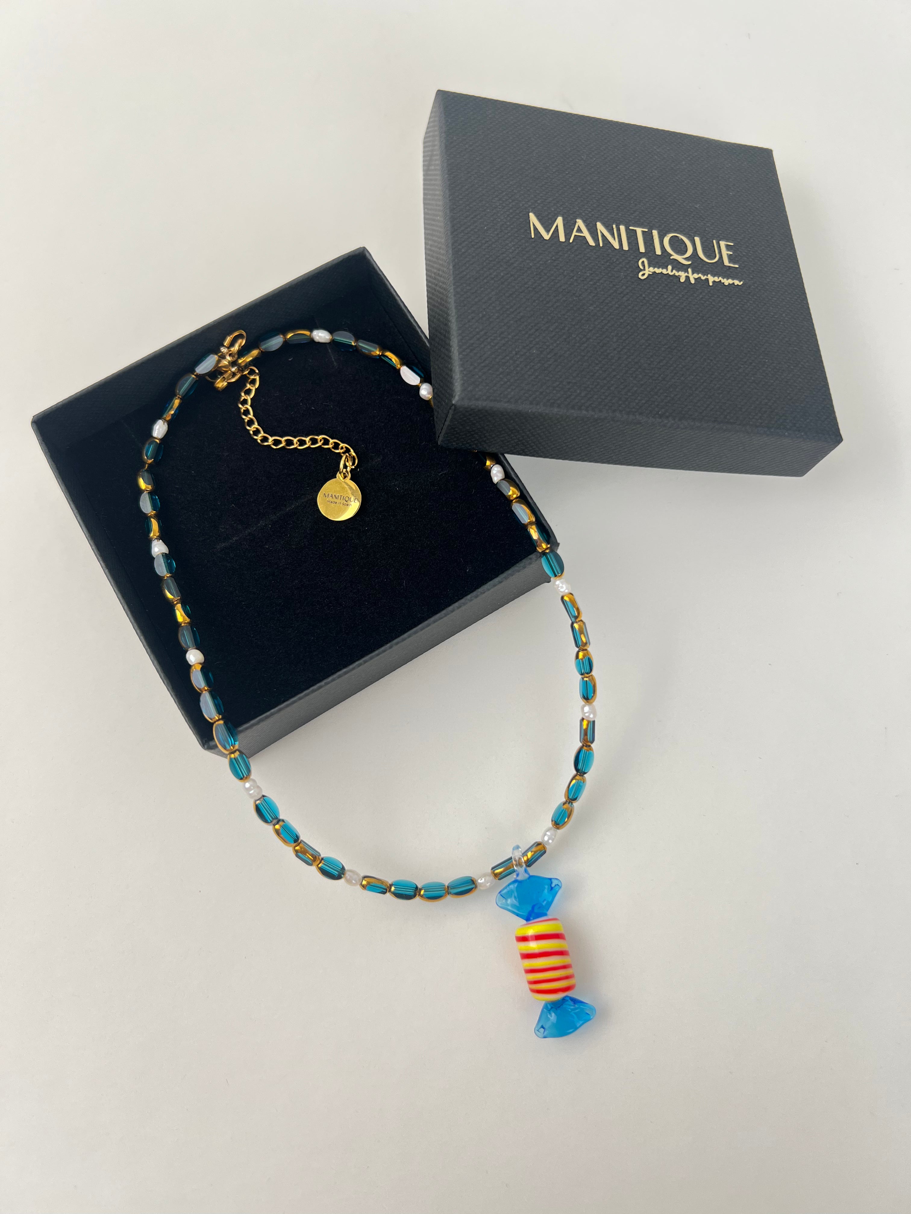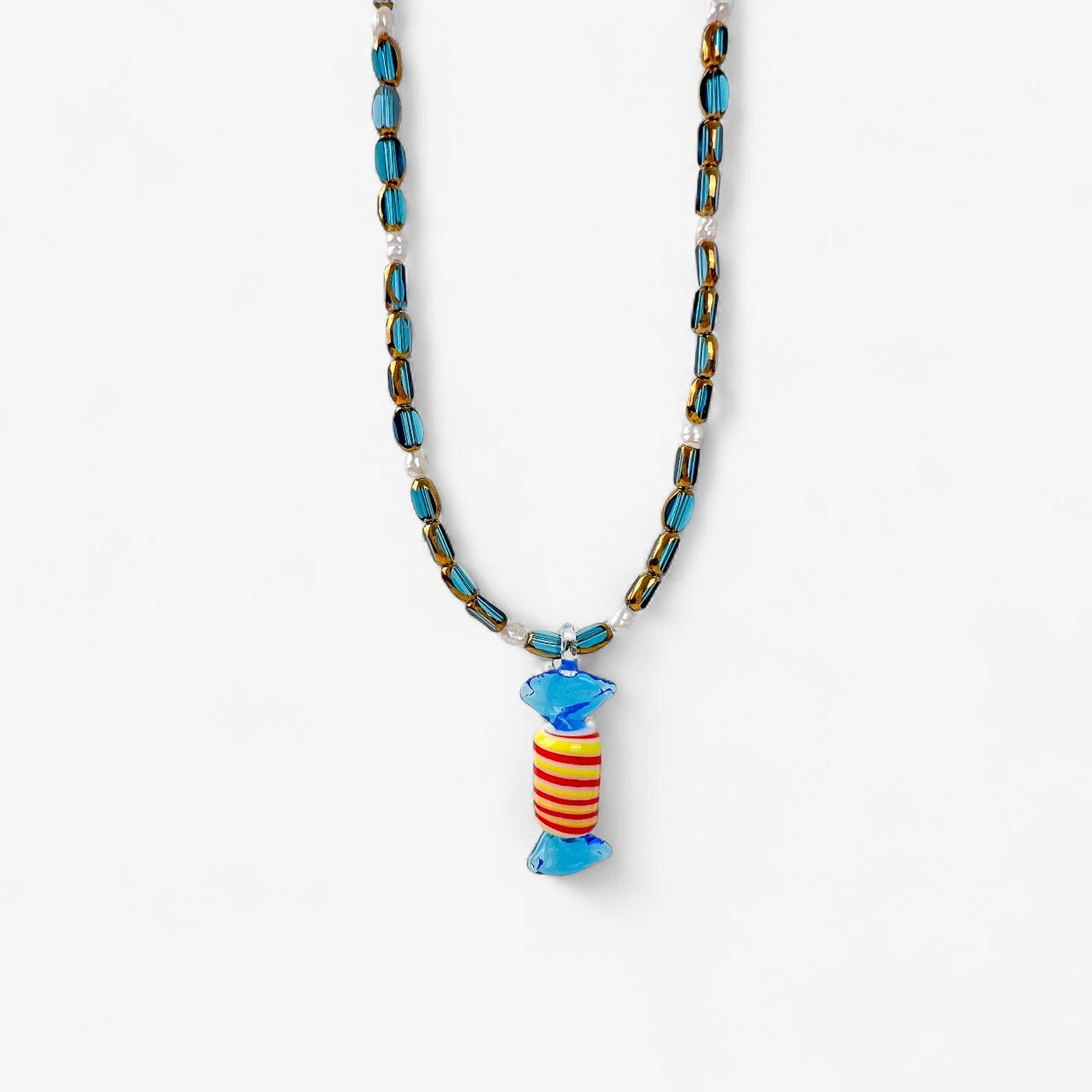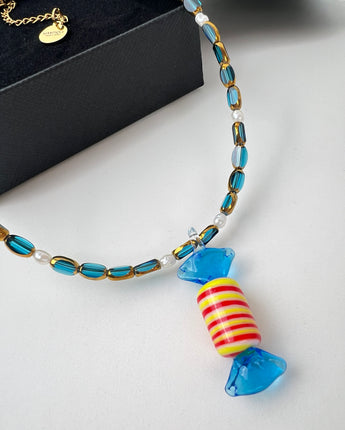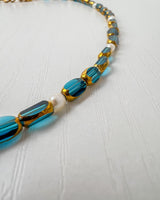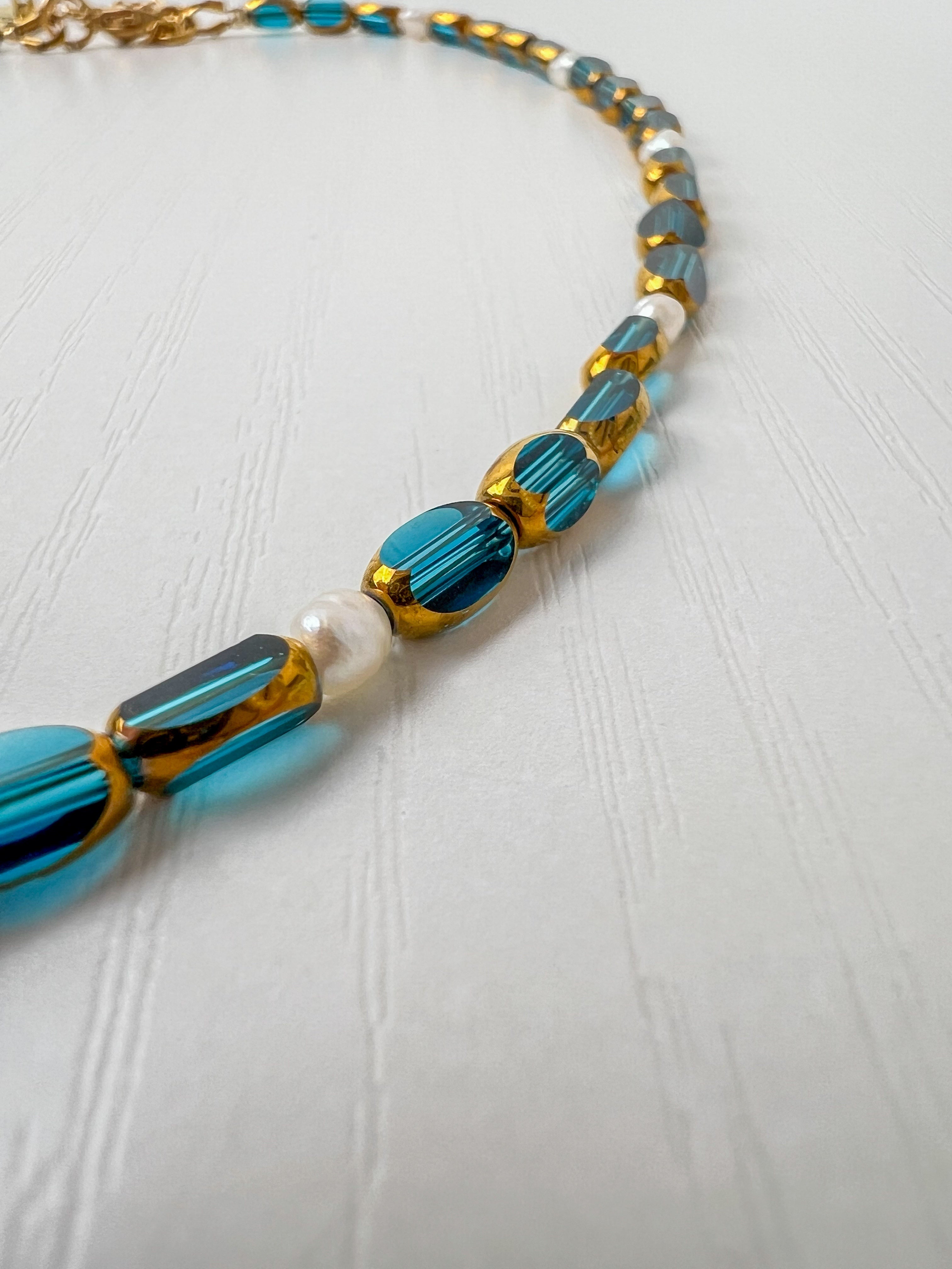 The necklace is made of glass beads, natural freshwater pearls and a lampwork glass pendant.
