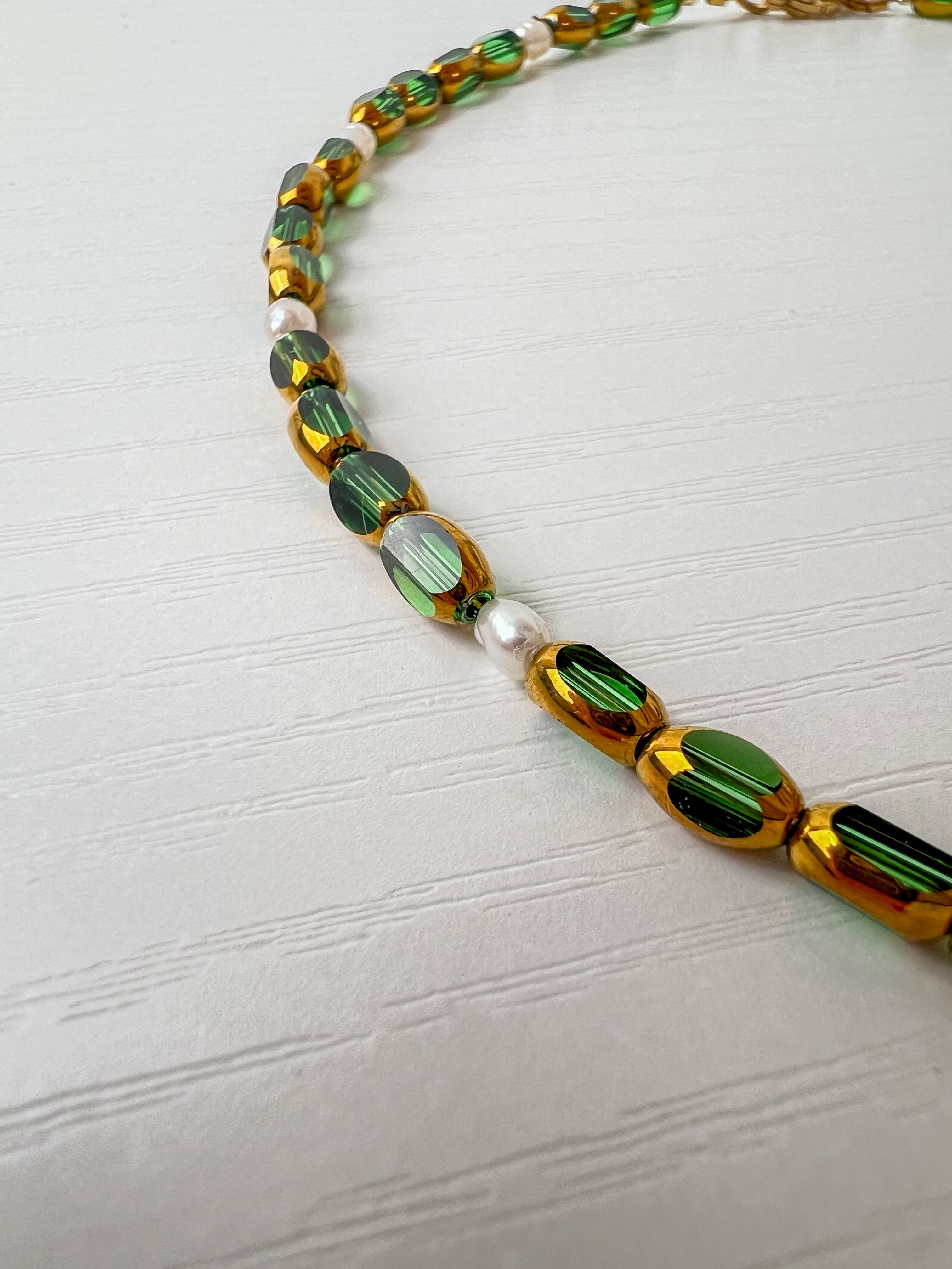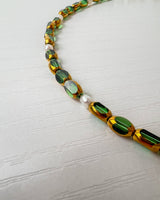 The necklace is made of glass beads, natural freshwater pearls and a lampwork glass pendant.