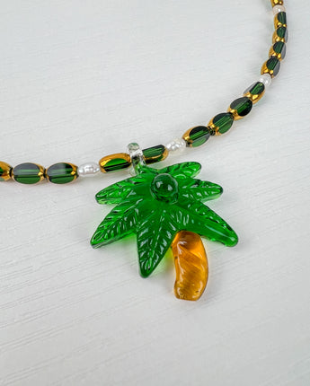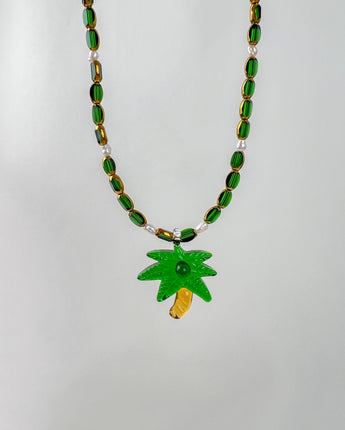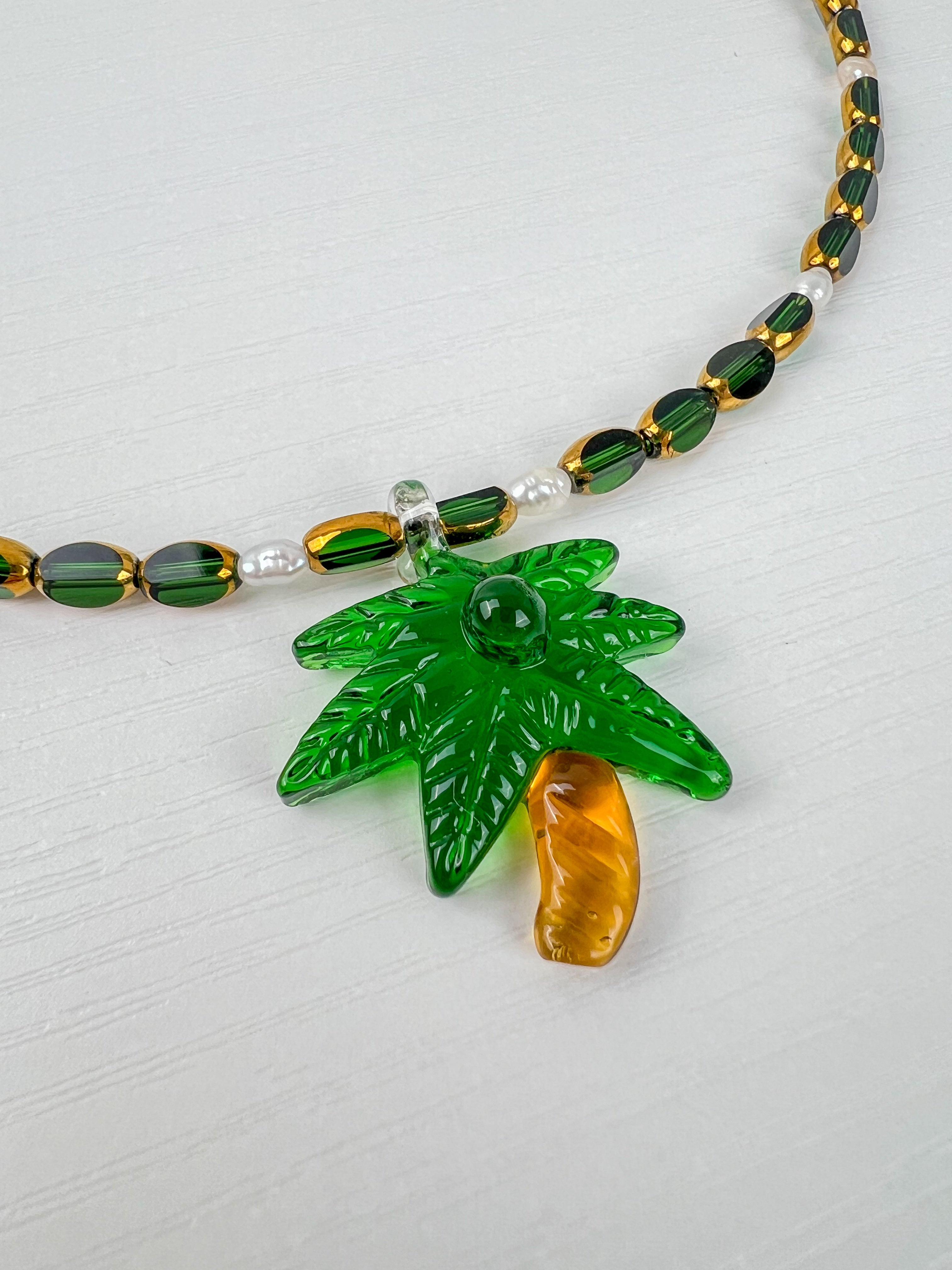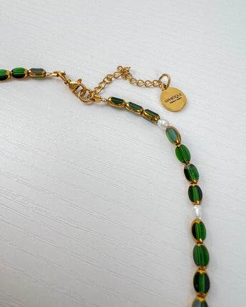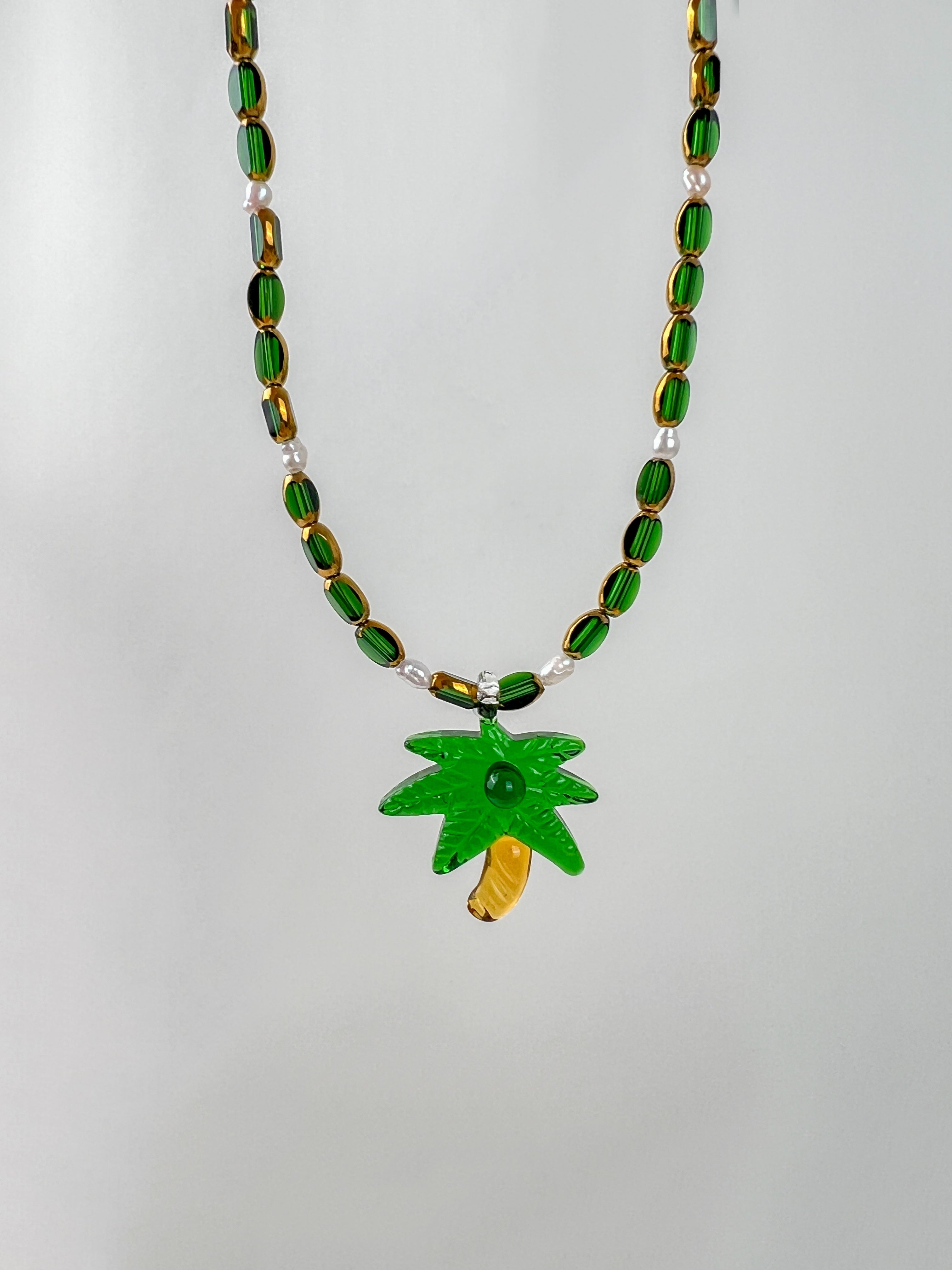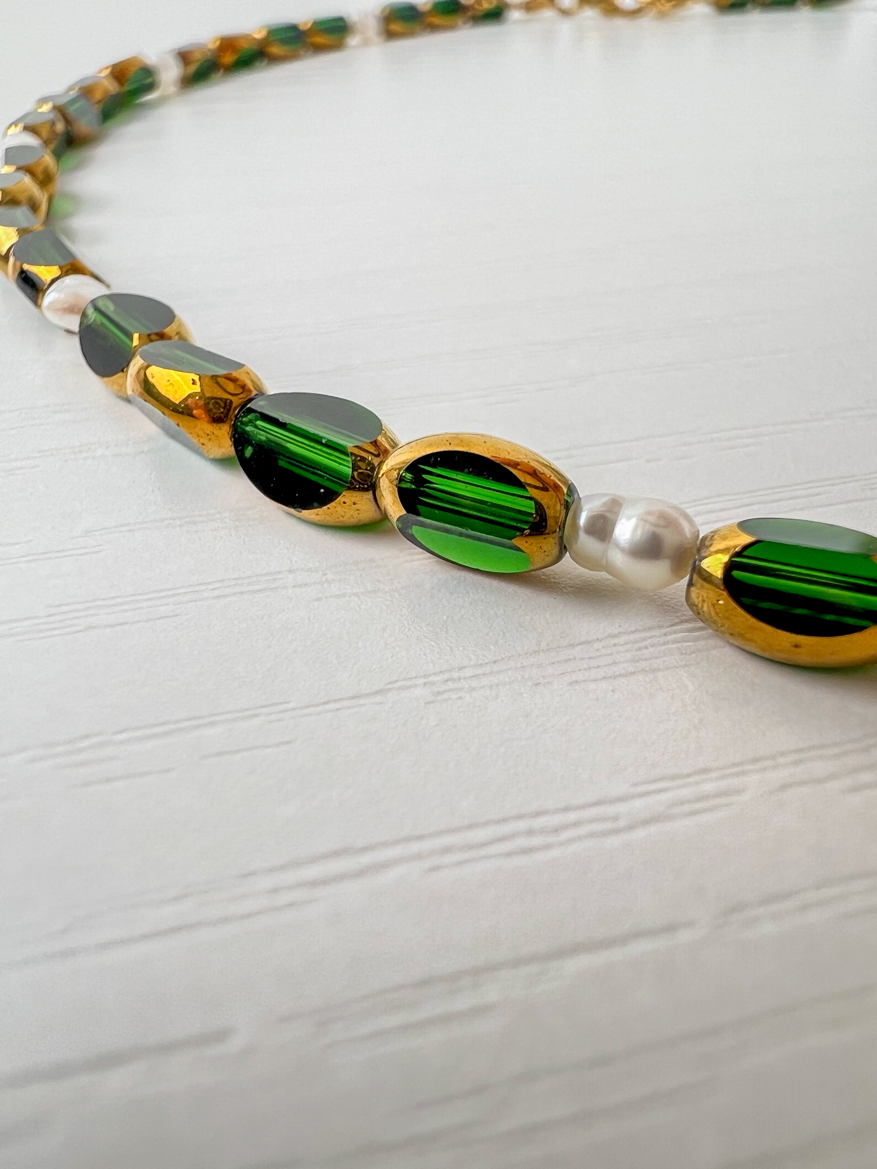 The necklace is made of glass beads, natural freshwater pearls and a lampwork glass pendant.