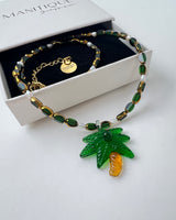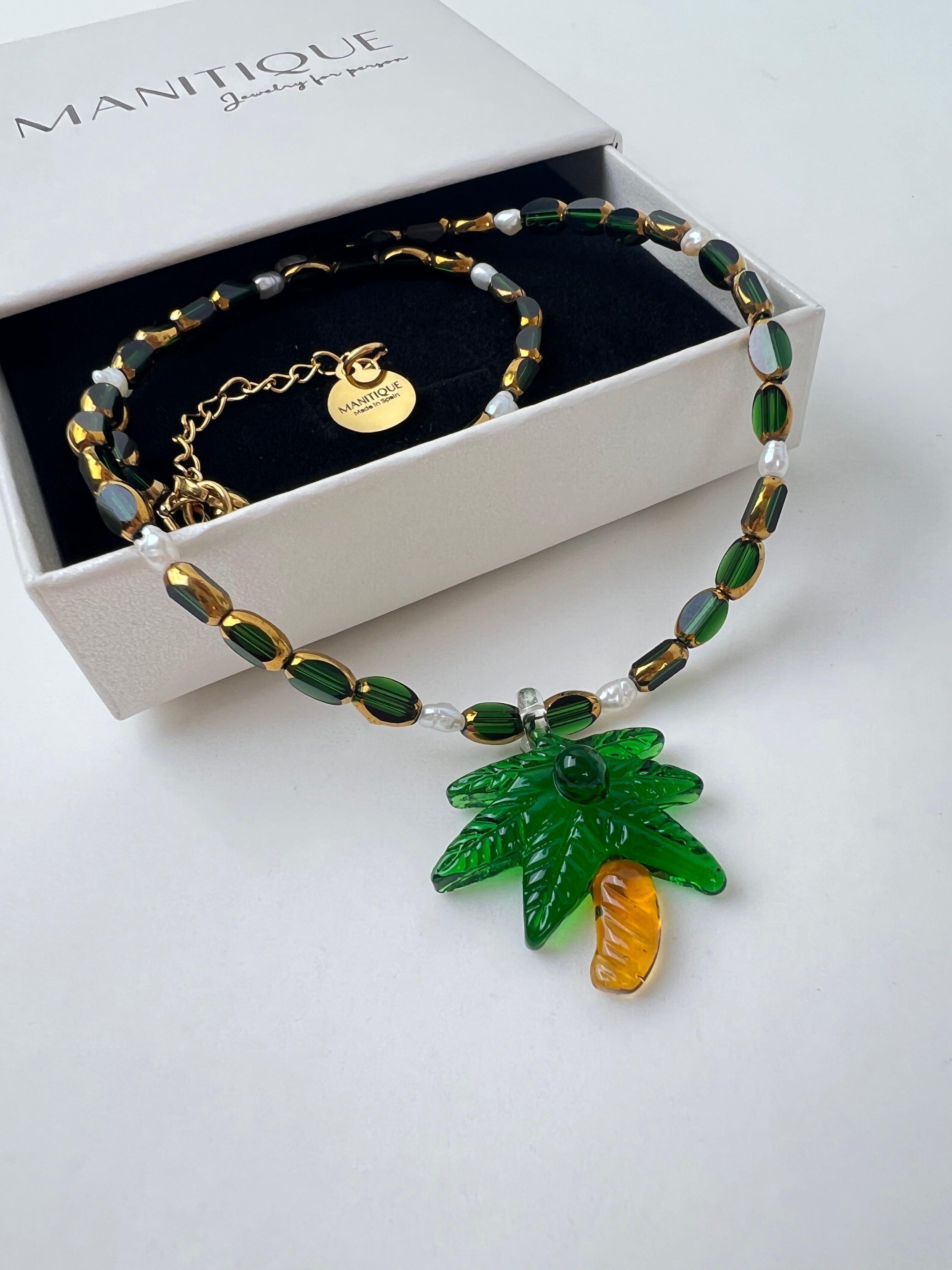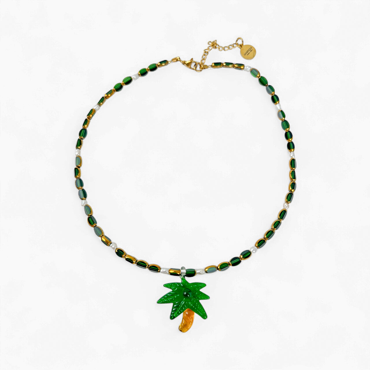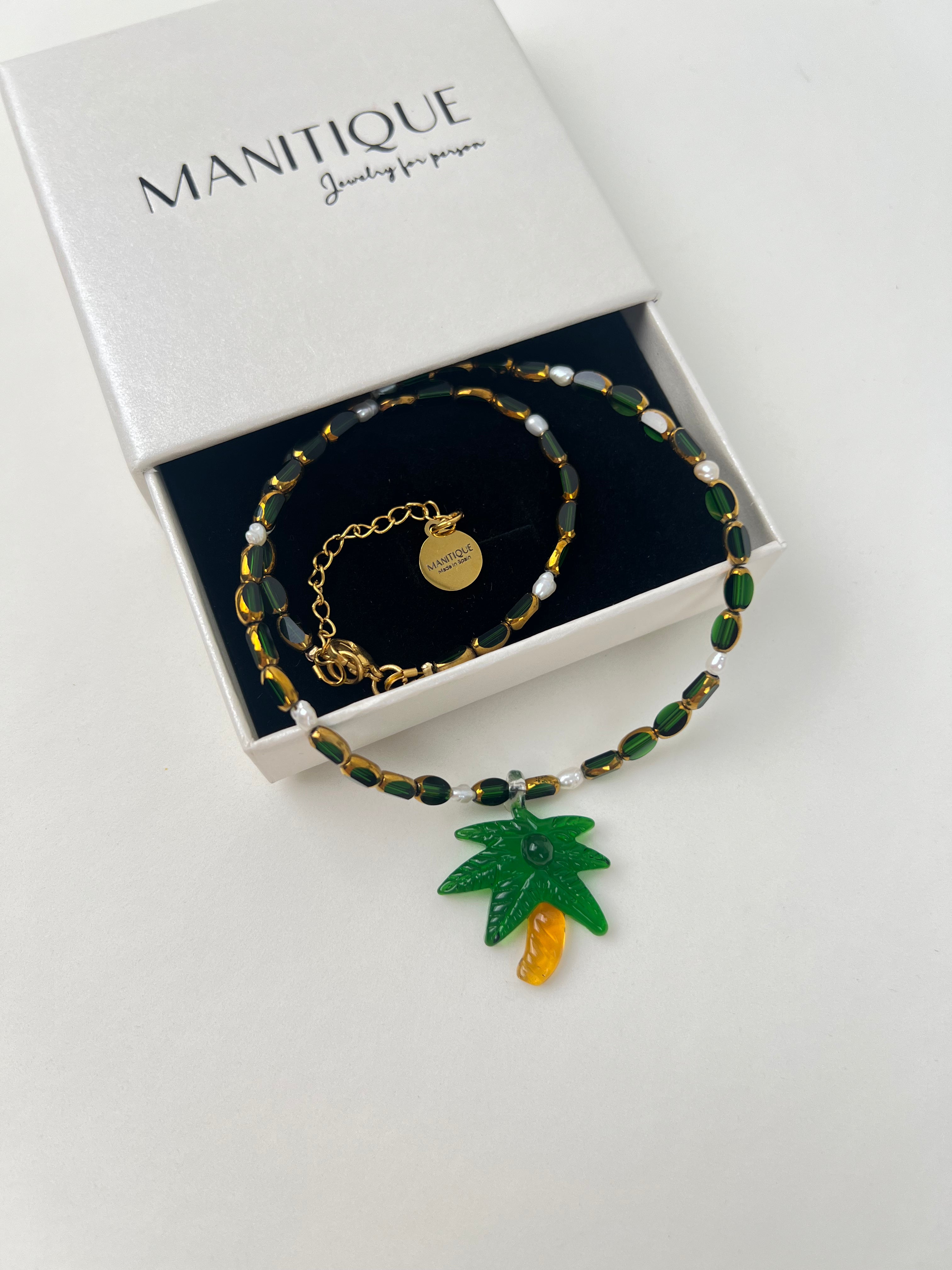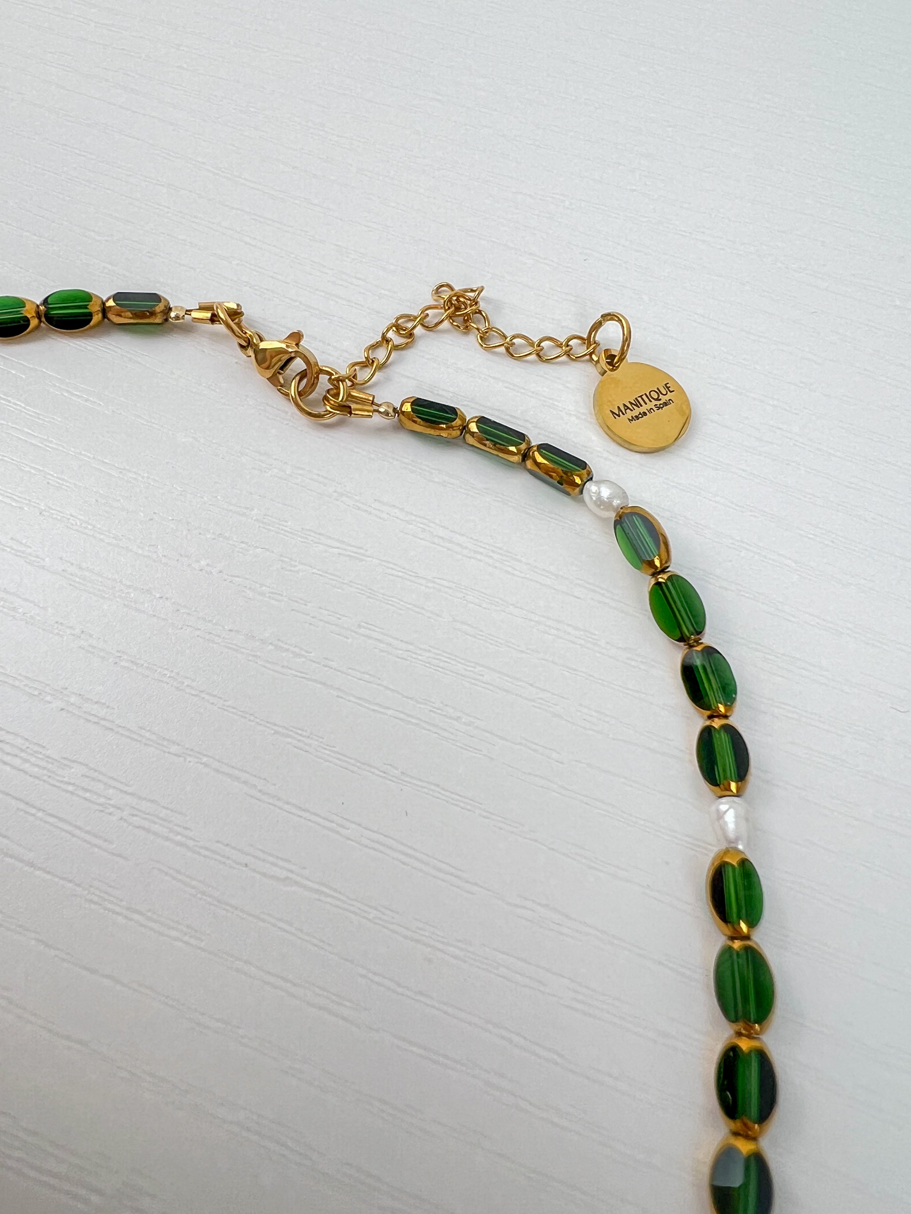 The necklace is made of glass beads, natural freshwater pearls and a lampwork glass pendant.